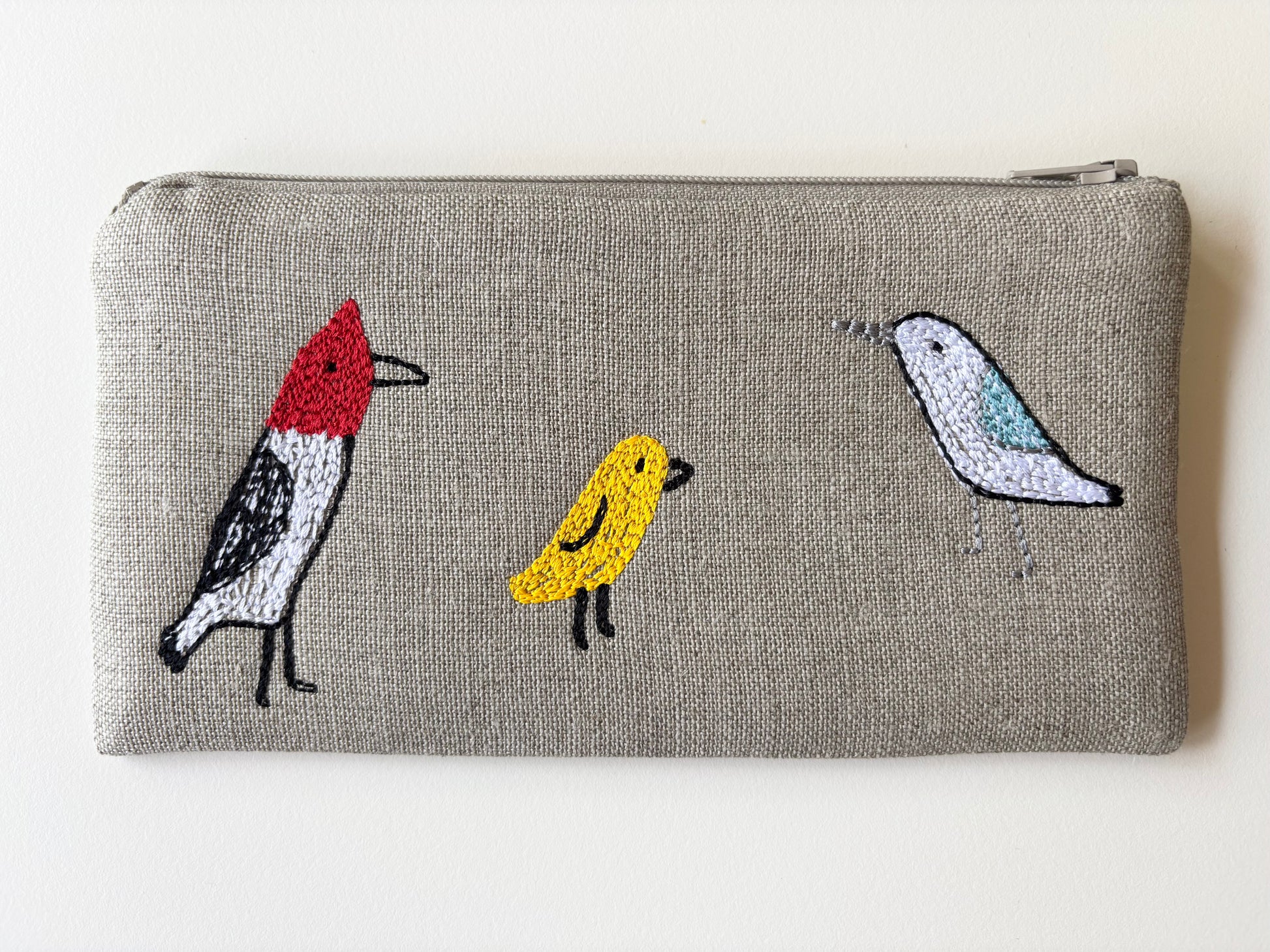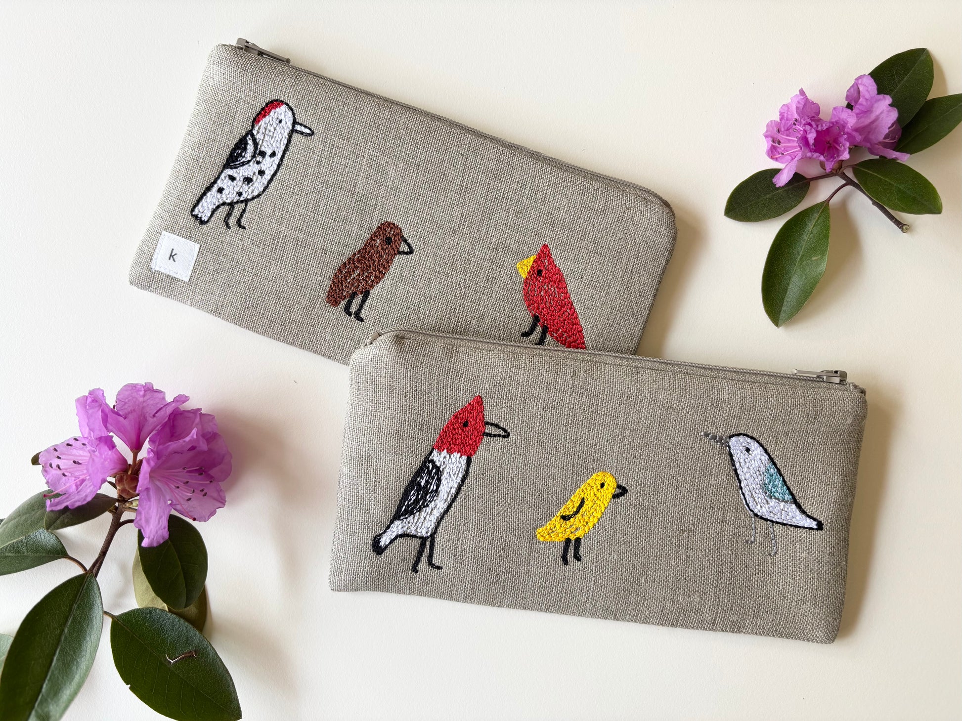 Zipper pouch is quilted with cotton batting and lined with dotted cotton..