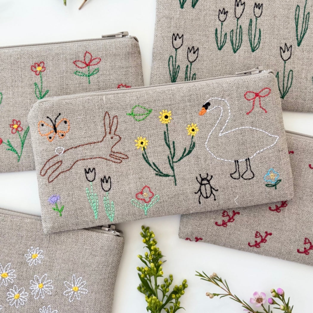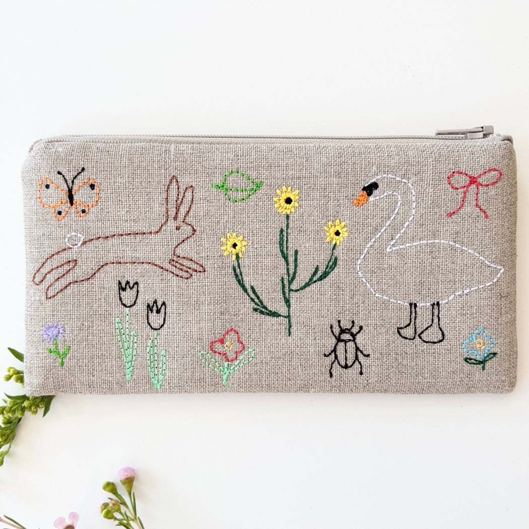 Zipper pouch is quilted with cotton batting.