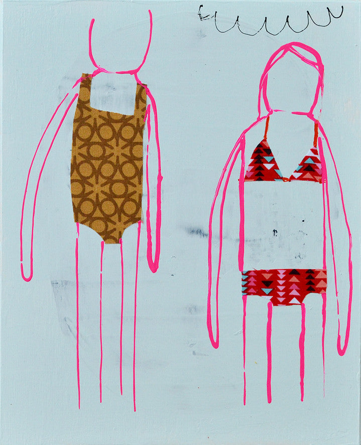 Acrylic, latex, and collage on 10"x 8"x 1" boxed panel.