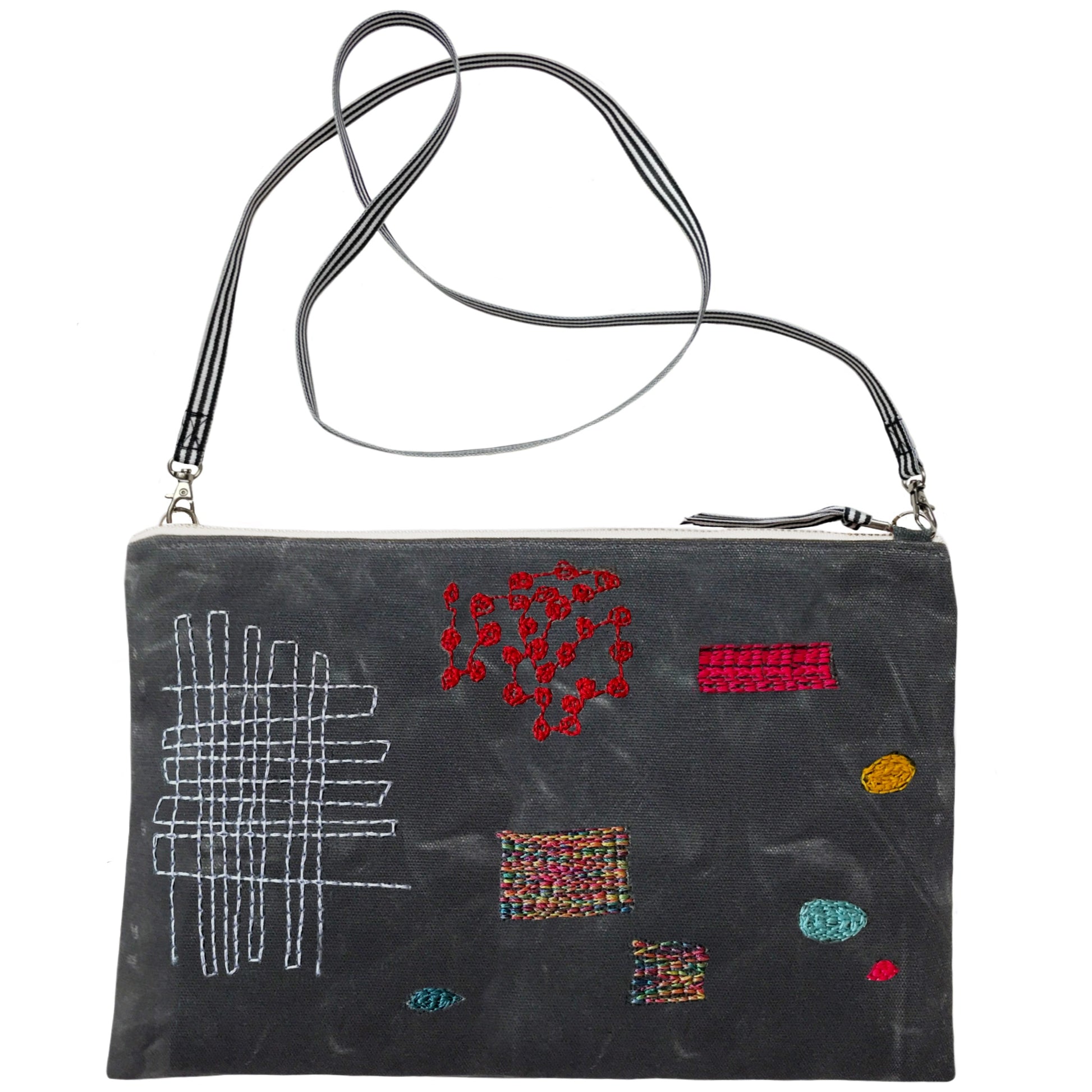Grey Waxed Canvas with Multi Stitched Pattern