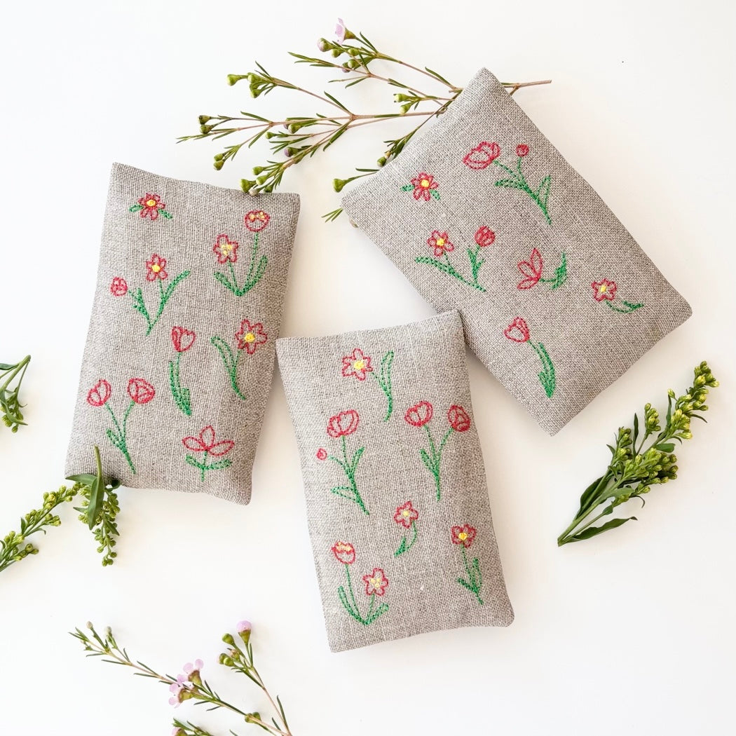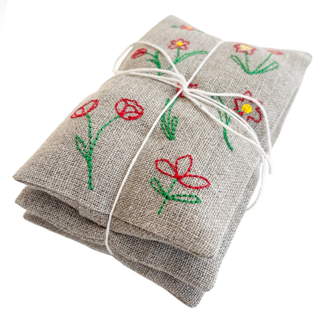 Filled with lavender. Sachets measure 3.5"x5.5". Bundle of three.