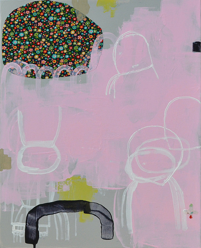 Acrylic and latex on 20"x 16"x 1" boxed panel.