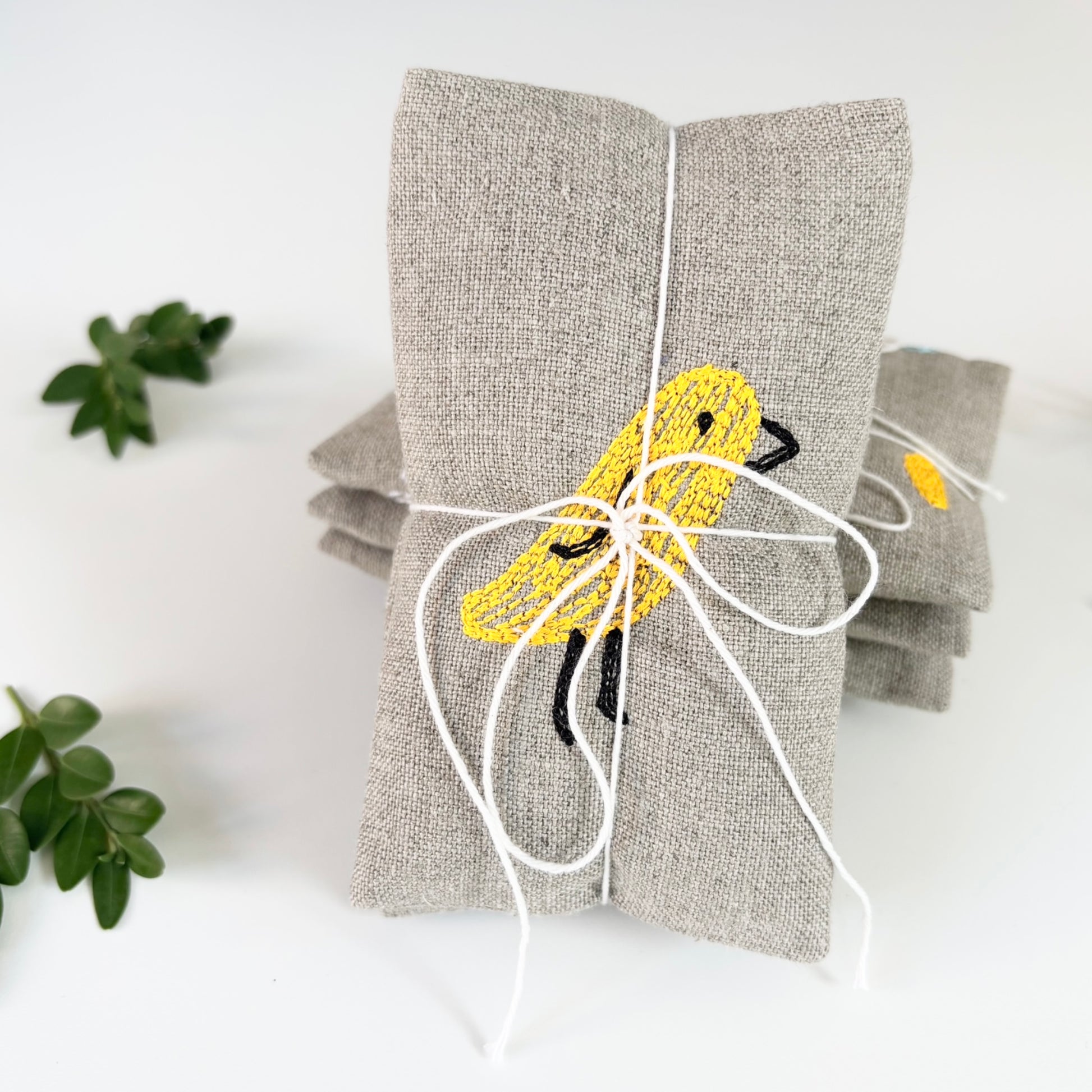 Filled with lavender. Sachets measure 3.5"x5.5". Bundle of three.