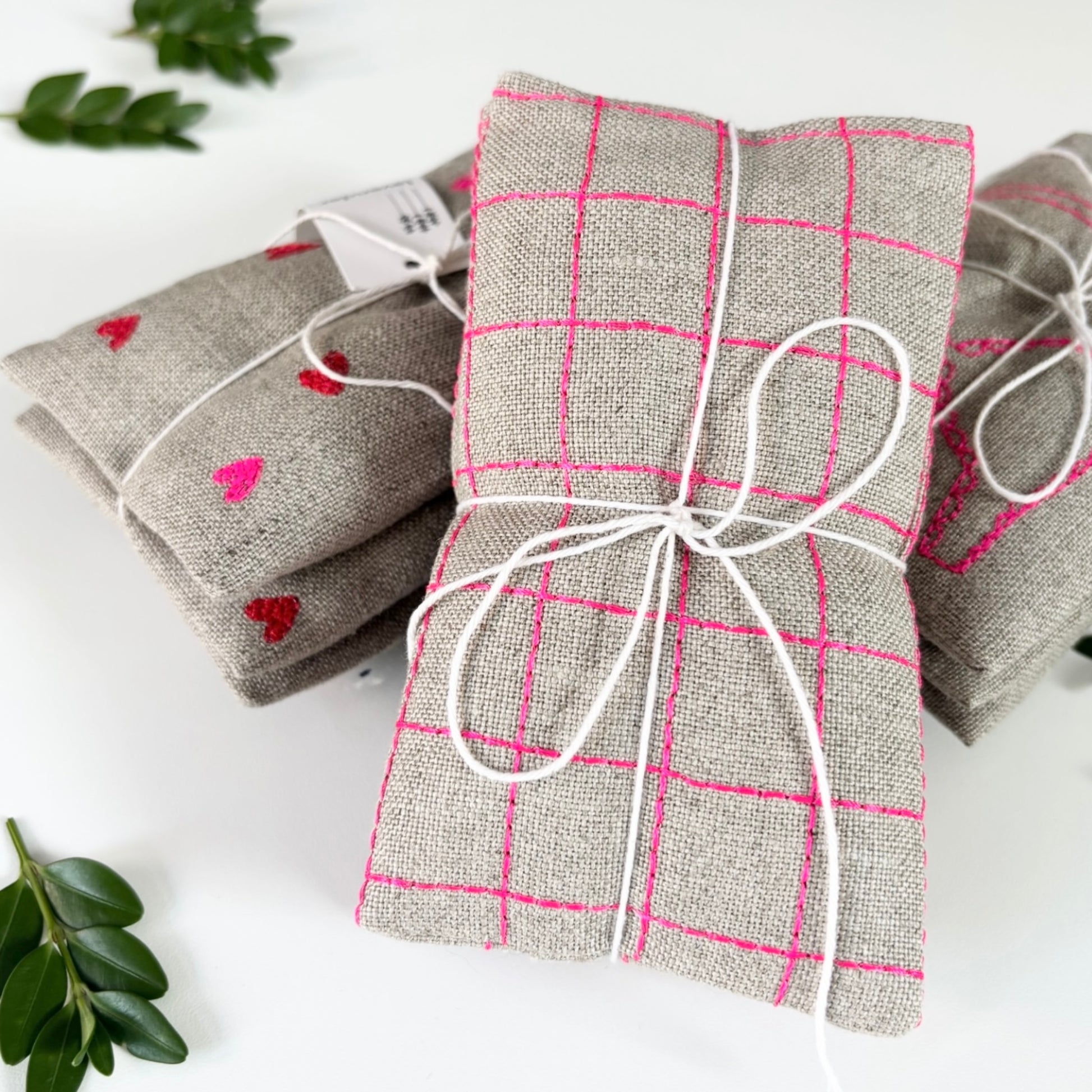Filled with lavender. Sachets measure 3.5"x5.5".