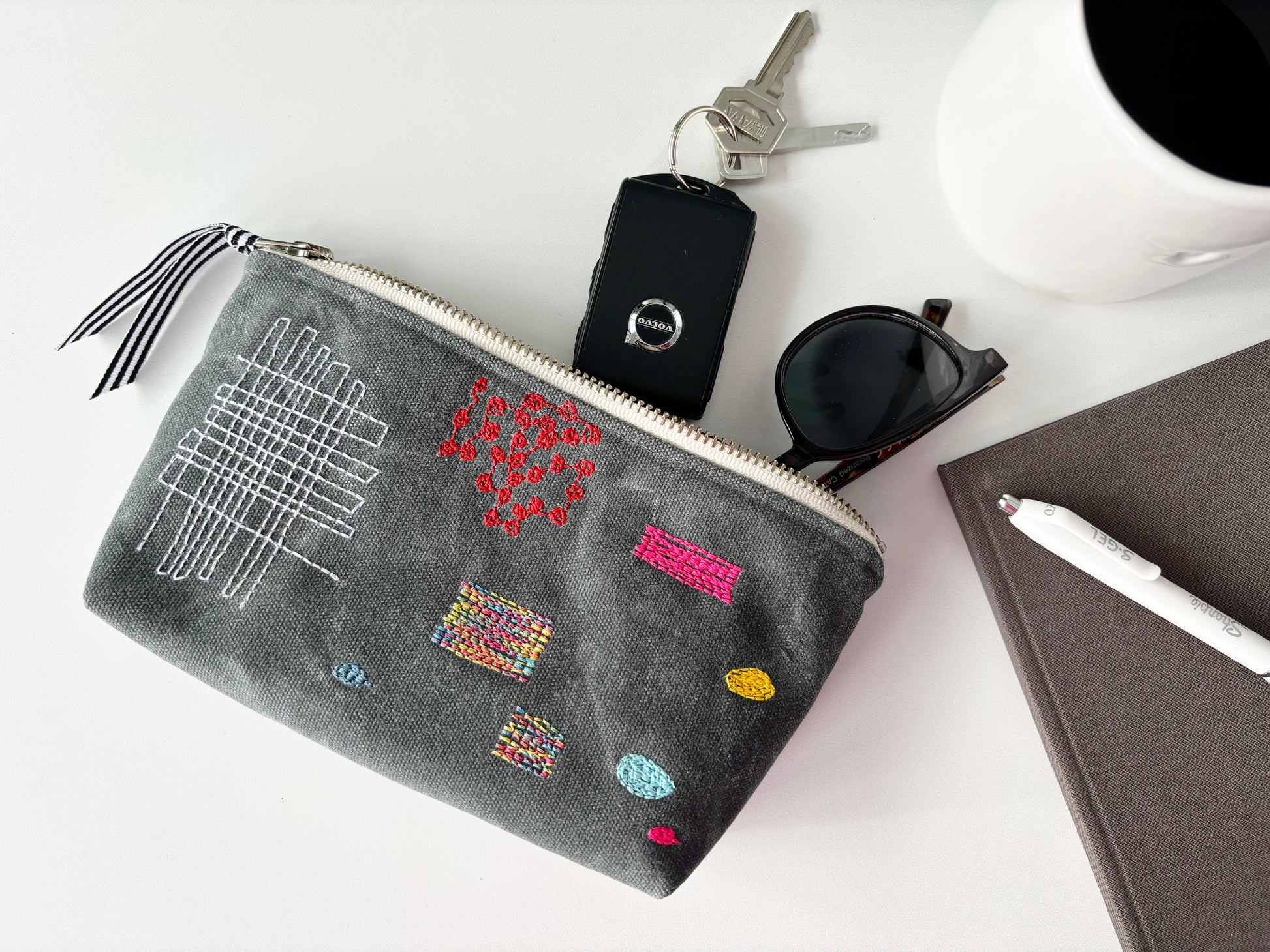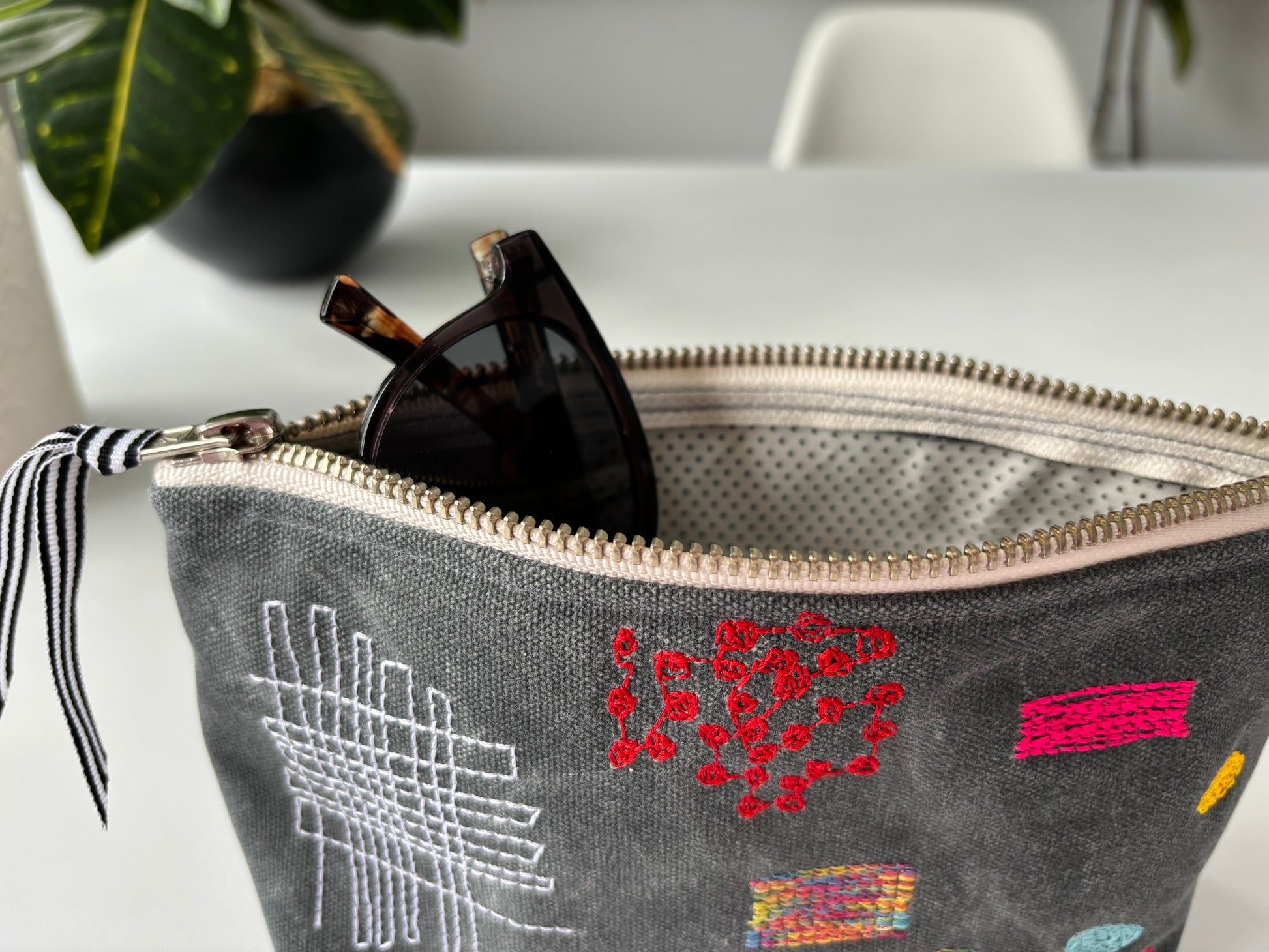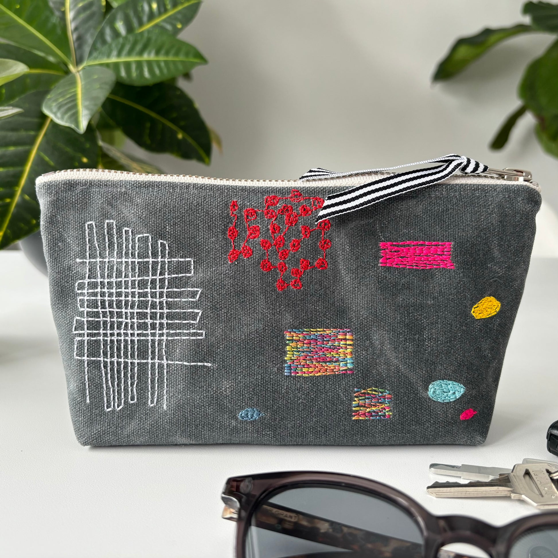 Grey Waxed Canvas with Multicolor Stitch