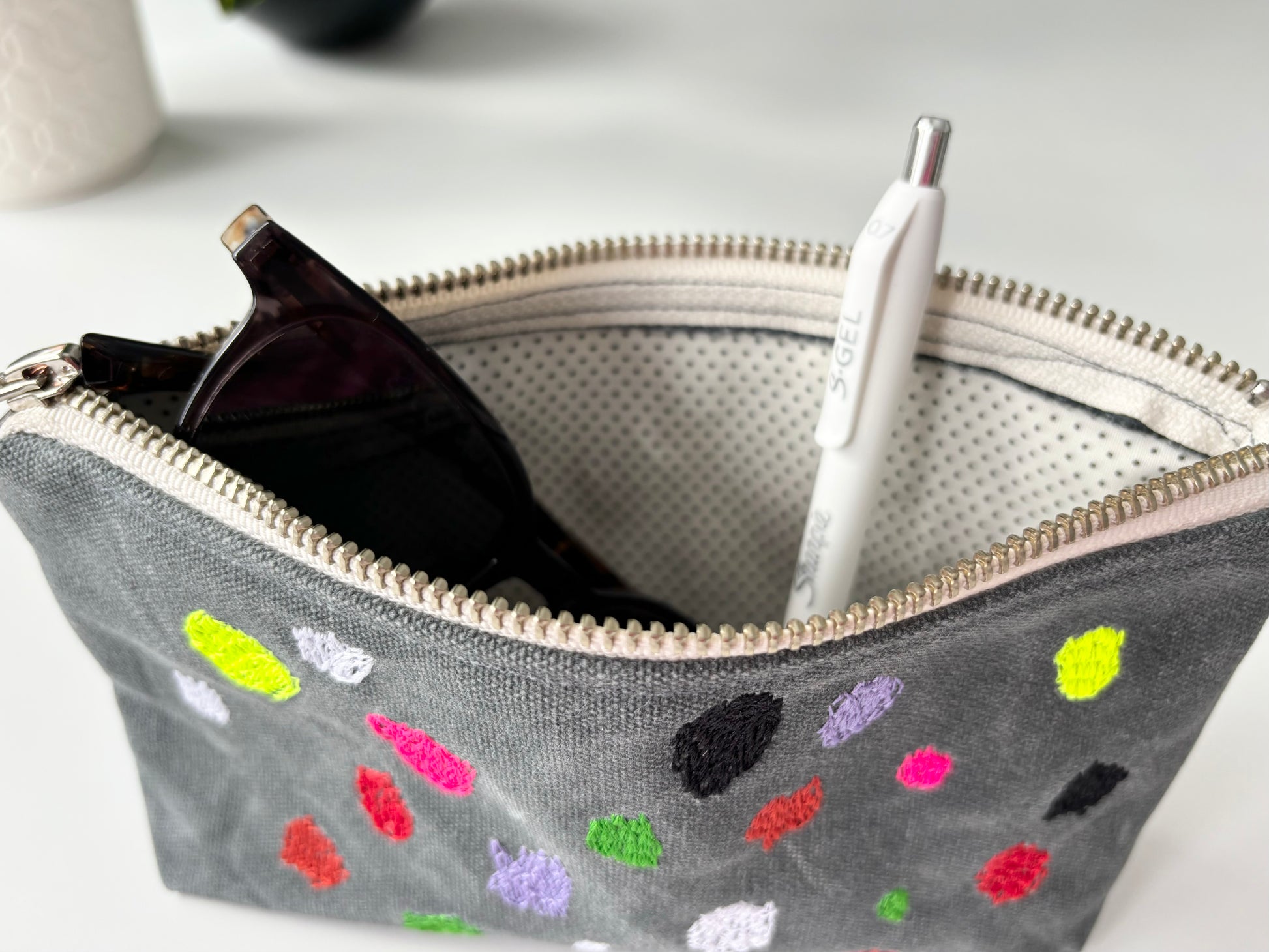 Grey Waxed Canvas with Multicolor Stitch