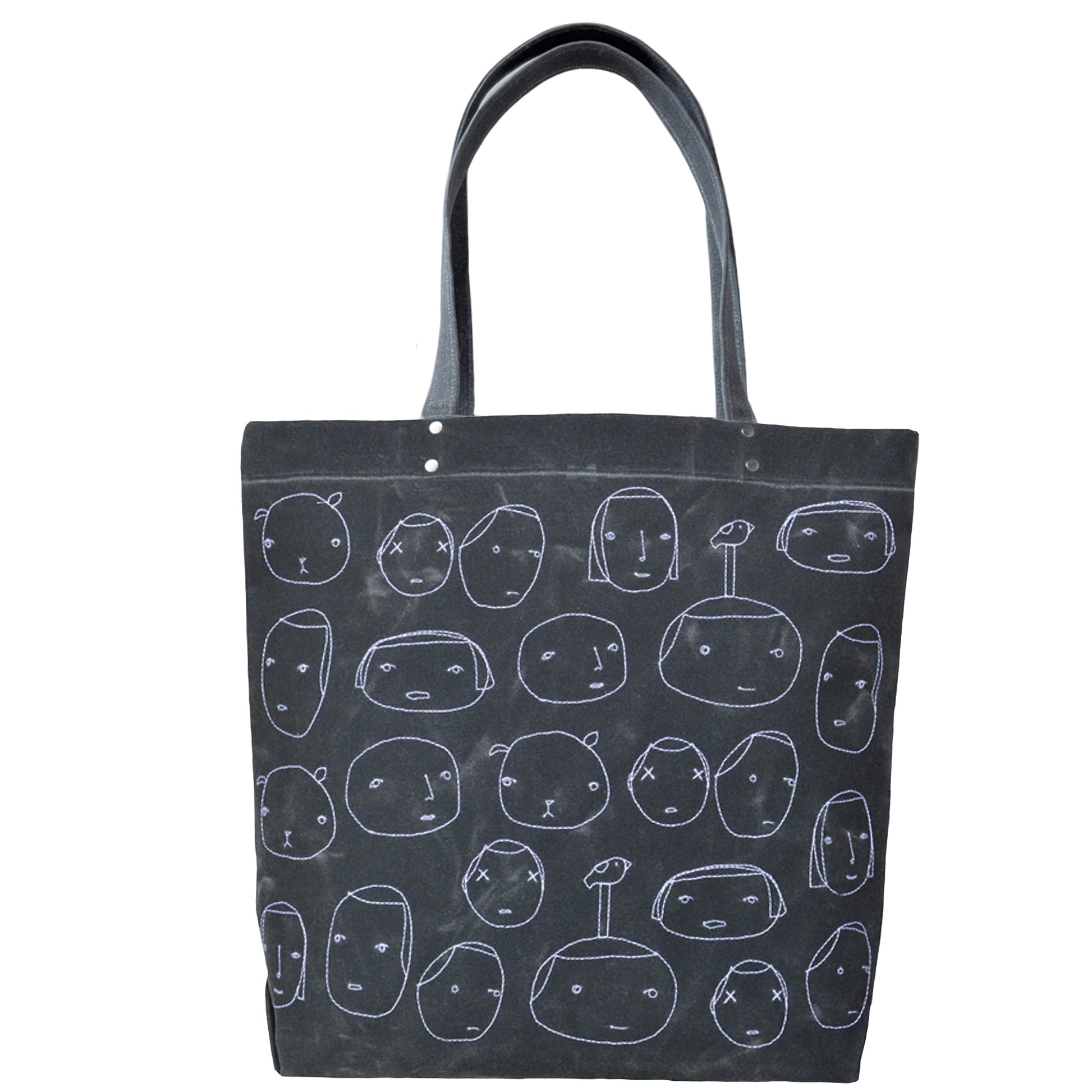 Waxed canvas tote with interior pocket and magnetic closure.Body measures 15"high x 16"wide, handle drop is 9”.